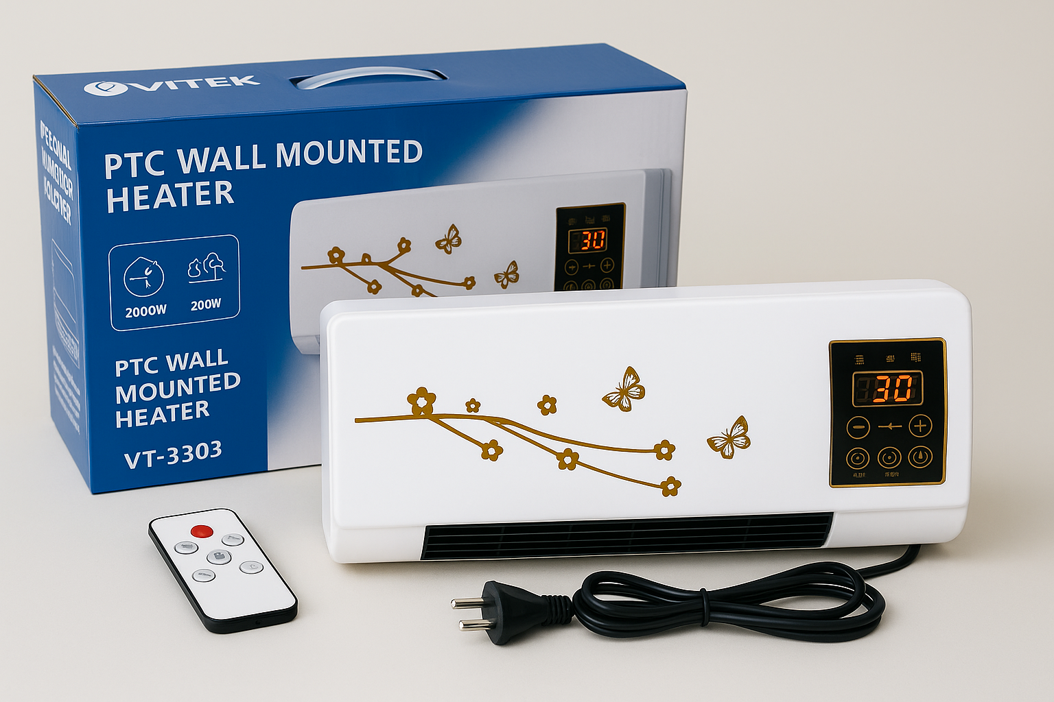 Fixé au mur, il s’intègre parfaitement à votre intérieur. Son affichage digital élégant vous permet de suivre la température en temps réel, et sa télécommande incluse vous évite tout déplacement.