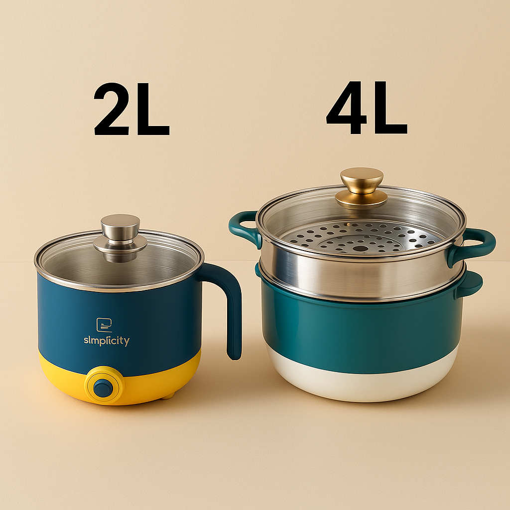 Selon vos besoins, optez pour la version compacte (2L) idéale pour 1 à 2 personnes, ou la grande version familiale (4L) parfaite pour cuisiner pour toute la famille !